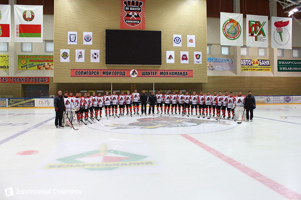 6 сентября солигорский "Шахтер" выездным матчем с "Гомелем" начнет свой поход за новыми достижениями в очередном розыгрыше Экстралиги чемпионата Беларуси по хоккею. Сегодня утром дружина Андрея Гусова провела заключительную перед выездной серией игр тренировку на домашнем льду. Особенным это занятие стало еще и потому, что его предваряла традиционная фотосессия всей команды накануне сезона, осуществить которую помогли клубу специалисты "Электронного Солигорска". Предлагаем вашему вниманию фоторепортаж о том, в какой атмосфере проходило фотографирование хоккеистов.