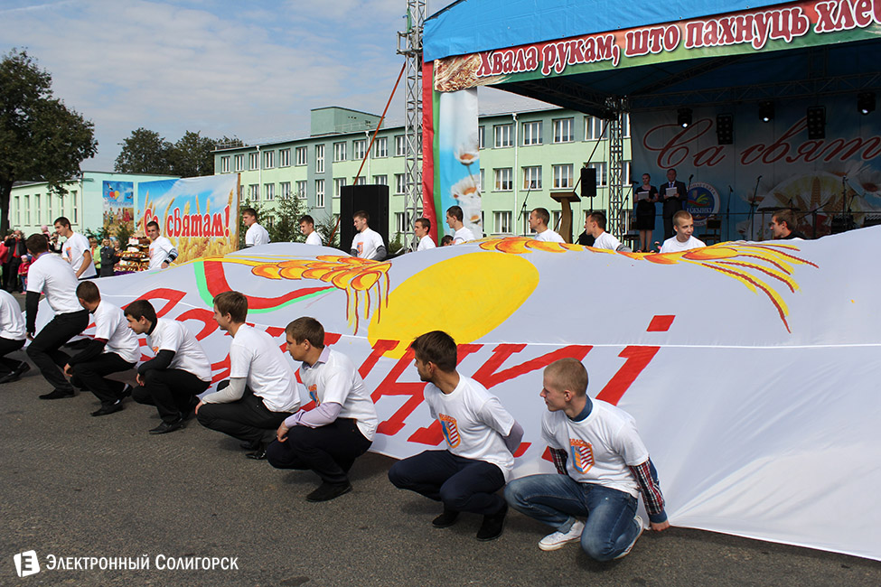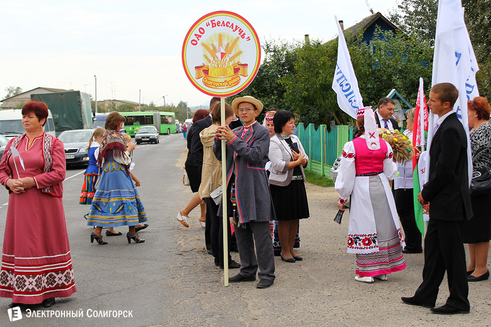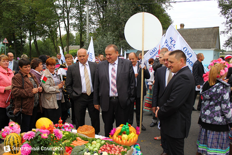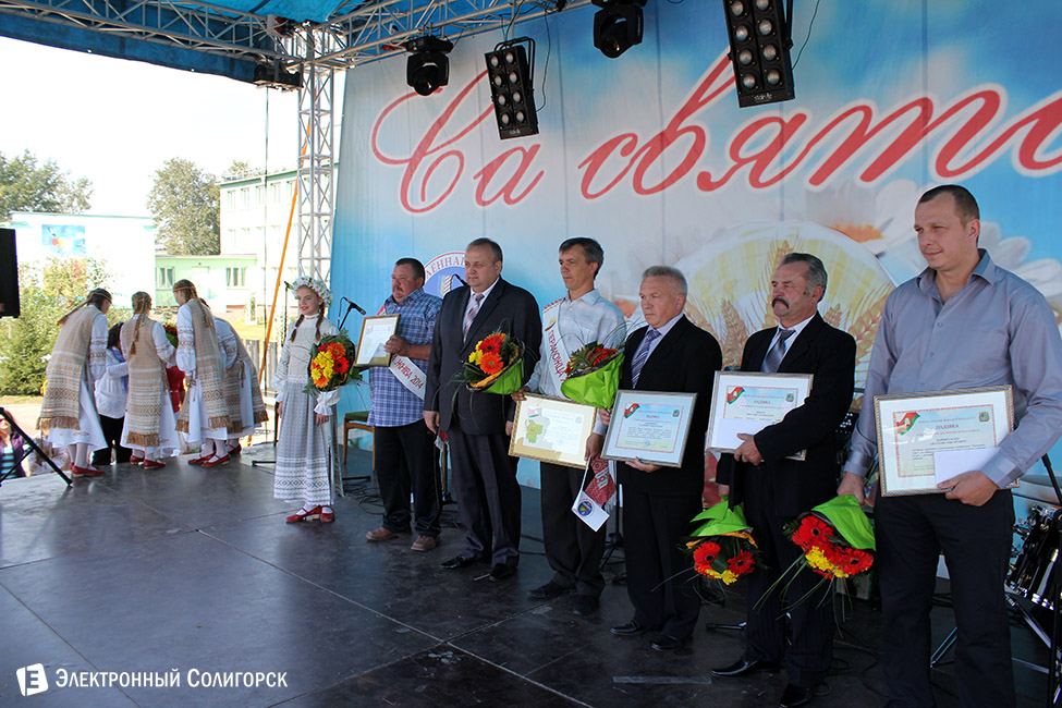 Последовавшее вслед за праздничным шествием чествование победителей жатвы торжественной речью начал председатель Солигорского райисполкома Александр Римашевский. Обращаясь к труженикам сельского хозяйства, глава района поблагодарил тех, кто вел самоотверженную битву за урожай на полях, а также отметил: "Слаженность и согласованность в работе тружеников и руководителей хозяйств, организаций района помогли достичь высоких показателей. Хорошая работа агропромышленного комплекса в этом году хороший задел на будущее. Имея хлеб в закромах, достаточную кормовую базу, нам не страшны никакие потрясения".