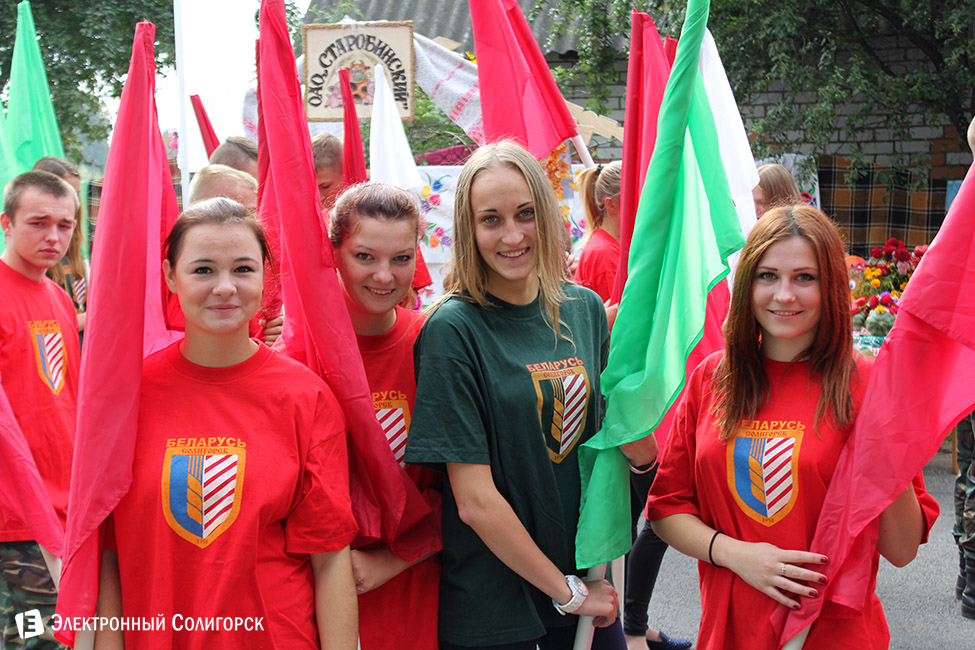 А в это время началась подготовка в одному из самых зрелищных пунктов праздничной программы - шествию представителей лучших солигорских сельскохозяйственных предприятий.