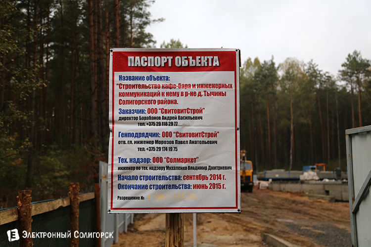 Строительство кафе-бара и инженерных коммуникаций к нему в районе д.Тычины началось в сентябре 2014 года. Заказчиком и генподрядчиком объекта выступил ООО «СвитовитСтрой».