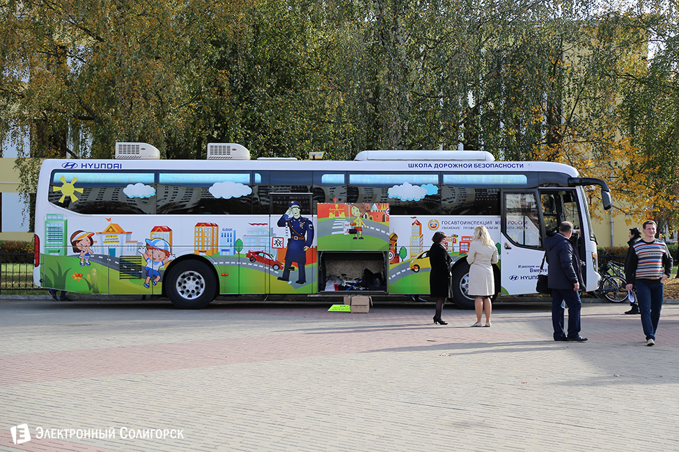 Единственный в Росcии автобус-тренажер «Школа дорожной безопасности» - это полноценный учебный класс «на колесах», предоставленный компанией Hyundai.