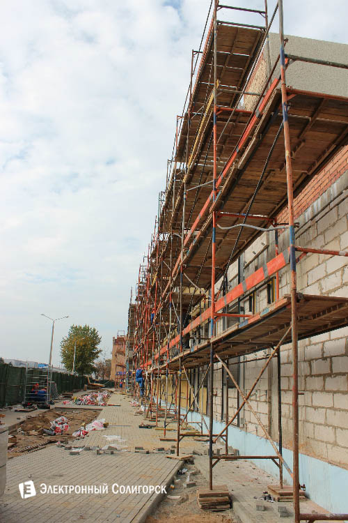 В начале нынешнего года мы рассказали на нашем портале о промежуточном этапе строительства. Возведением здания занимались специалисты фирмы-заказчика «ЭкоСтройИнвест». Летом нынешнего года в связи с неустойчивым финансированием ход строительных работ был несколько замедлен, однако сегодня на стройплощадке снова заметное оживление: ведутся работы по наружной отделке здания. На субподряде у застройщика – отделочники СУ-137 стройтреста №3.