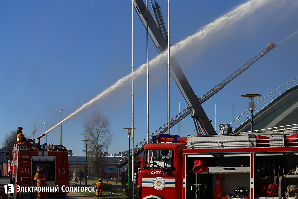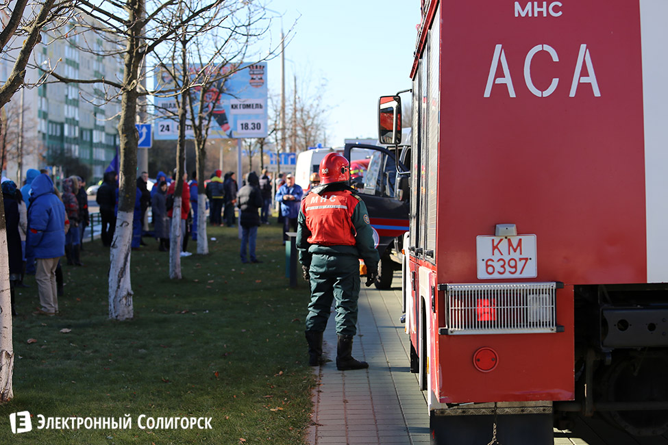 Если кто-то стал сегодня днем очевидцем скопления пожарных машин возле ледового дворца - не пугайтесь и не спешите рассказывать о громком ЧП. Сегодня в Солигорском спортивно-зрелищном комплексе Солигорска проходили масштабные учения МЧС. В них принимали участие: весь состав Солигорского ГРОЧС, а также представители Минского областного управления МЧС. По распоряжению Солигорского райисполкома движение на участке дороги по ул. К.Заслонова от перекрестка с ул.Ленина до перекрестка с ул. Л.Комсомола было перекрыто.