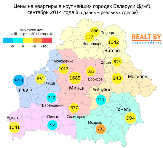 Как сообщает интернет-центр недвижимости Realt.by, все крупные центры столичного региона закончили квартал с положительной динамикой цен на жилье, что во многом схоже с ситуацией в самой столице, где средняя цена на квартиры в III квартале выросла на 1,3%, не смотря на что, спрос на квартиры повысился.