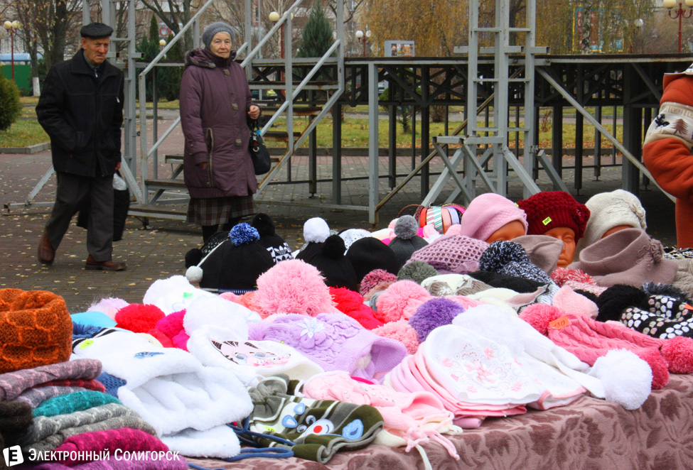 Головные уборы, одежду от ЗАО «Калинка», варежки и теплые носочки солигорские продавцы предлагали покупателям.