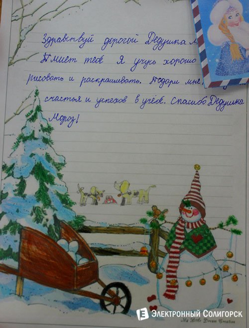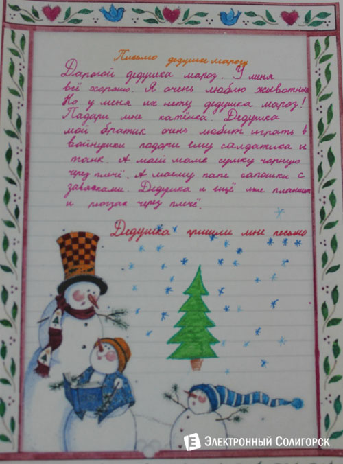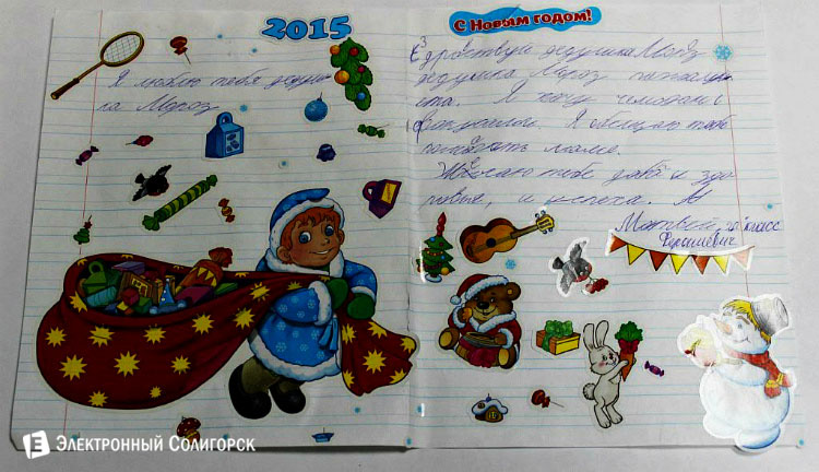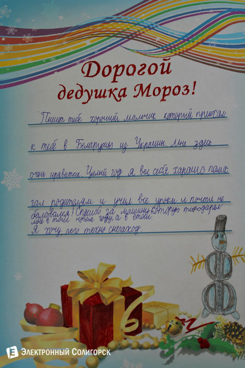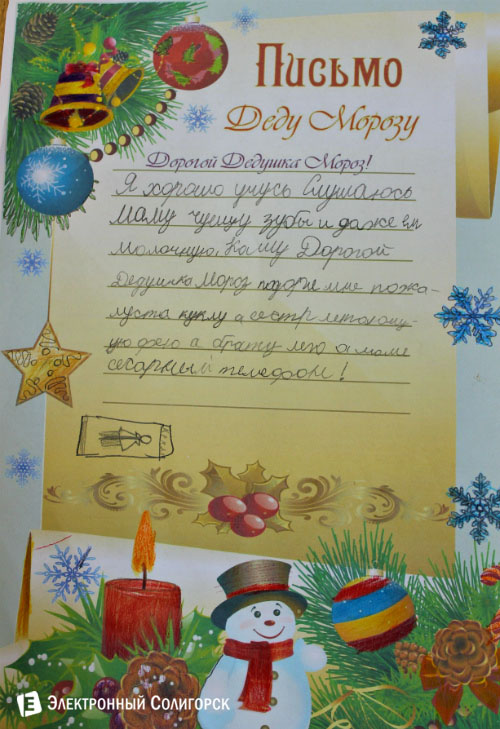 За беспрепятственный доступ к почтовому ящику Деда Мороза редакция «Электронного Солигорска» благодарит администрацию школы №2, а также тех родителей, которые откликнулись на просьбу корреспондента и разрешили ознакомиться с содержимым конверта, адресованного сказочному герою, прежде, чем отнести его почту. Надеемся, что все детские мечты, которые были озвучены в этих и многих других письмах, исполнятся! С наступающим Новым годом!