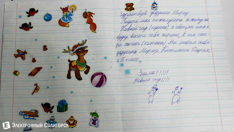 Задолго до Нового года миллионы детей по всему миру старательно выводили буквы и писали письма Деду Морозу. В этих письмах – просьбы и пожелания, рассказы о себе и своих школьных успехах, обещания слушаться родителей и кушать кашу. А о чём просили у сказочного героя солигорские малыши? Что писали они Деду Морозу и что бы они хотели получить в качестве подарка?
