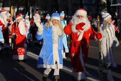 Организаторы шествия анонсировали, что нынешний парад Дедов Морозов станет самым масштабным среди аналогичных солигорских мероприятий. В честь 90-летия Солигоркого района в параде было запланировано участие 90 пар новогодних героев. Так ли было на самом деле - сосчитать не удалось. Но это и не главное, ведь Дедов Морозов, Снегурочек, героев сказок, мультфильмов, добрых персонажей и симпатичных представителей нечистой силы собралось действительно очень много.