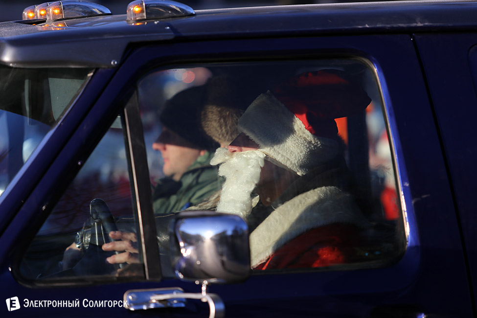 Деды Морозы не только сходились, но и съезжались на вполне современных транспортных средствах, доказав, что умеют управлять не только оленями.