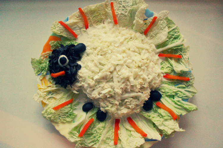 - Я на Новый год готовлю немного. «Советское» шампанское, мандарины и красная икра – это на новогоднем столе в нашем доме присутствует всегда, остальные блюда – под настроение. Иногда запекаю курицу или рыбу в духовке, готовлю какой-нибудь салат. А ещё обязательно готовлю какое-нибудь блюдо в виде символа наступающего года. Для встречи наступившего года готовила вот такой салат в виде барашка, - поделилась собеседница «ЭС».