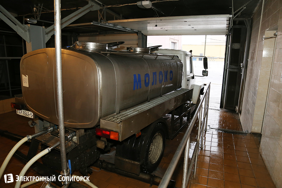 Производственная цепочка начинается с доставки сырья прямиком с молочно-товарных ферм района. Первая машина, наполненная свеженадоенным молоком, прибывает на молокозавод уже в 7 утра. За день таких машин прибывает около 40, что в общей сложности составит 200-220 тонн молока в день.