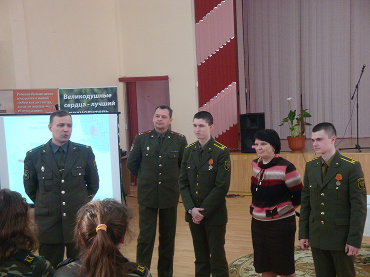 Представители военной академии в рамках акции провели урок мужества, на котором присутствовали дети из кадетских и выпускных классов первой школы. Напомним, что решением Солигорского исполнительного комитета в 2012 году в ГУО «Средняя школа № 1 г.Солигорска» открыт первый кадетский класс.