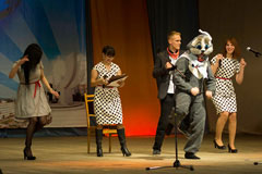 А у команды "Мы из Центра" традиционно объектом для шуток является другой член жюри - майор милиции Сергей Соловей, начальник инспекции по делам несовершеннолетних. Похоже, что некоторых членов команды и представителя милиции связывают долгие годы крепкой дружбы, иначе откуда было взяться шутке о том, что "парень с фамилией Соловей решил пойти в милицию после того, как его покусал милиционер".