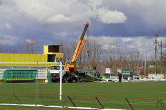 Футбол состоится! На стадионе "Строитель" экстренно ликвидируют последствия стихии