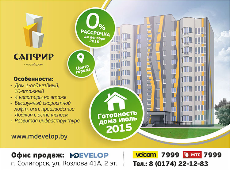 Ознакомиться с планировками, площадью квартир и ходом строительства жилого дома «Сапфир» Вы можете на сайте sapfir.mdevelop.by