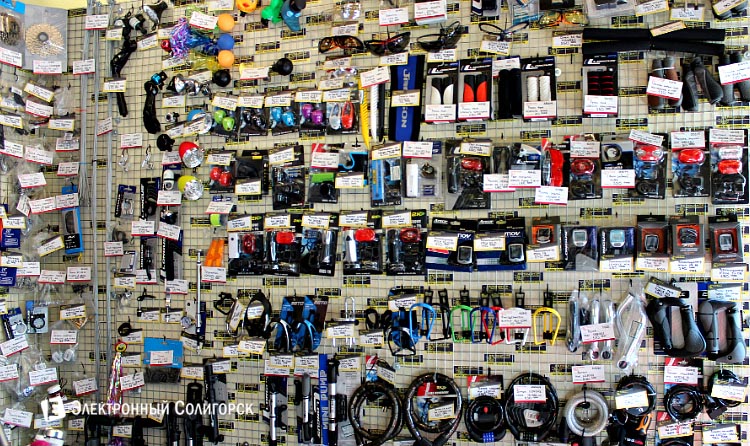 Выбор велоаксессуаров в велоцентре Дмитрия Куприянова также огромен. Кроме того, при покупке велосипеда, покупателю предоставляется карта на покупку аксессуаров с 20% скидкой.