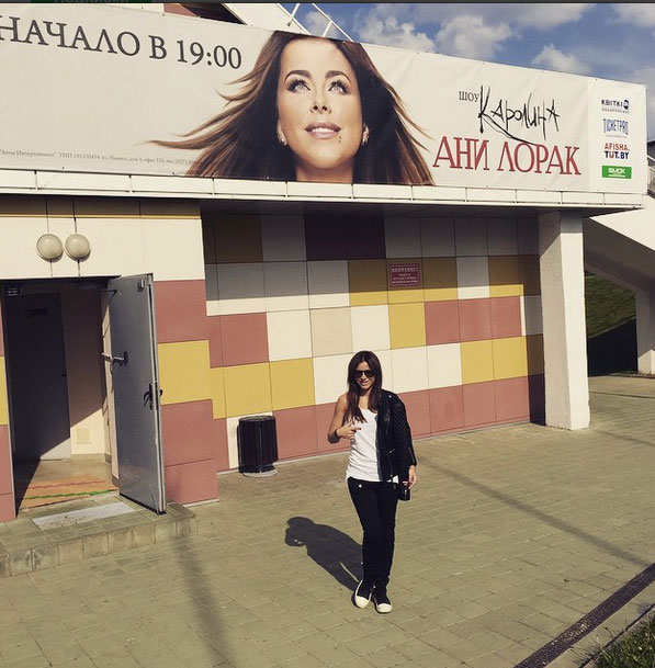 Фото из официального инстаграма Ани Лорак. За 2 часа до концерта исполнительница позировала под баннером со своим изображением и зазывала через соцсети на свой концерт.
