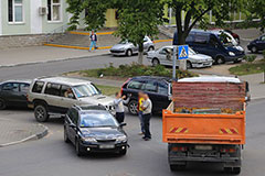 Полуденное ДТП. На перекрестке ул.Строителей и Л.Комсомола в Солигорске легковушка столкнулась с грузовиком
