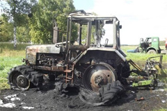 Колеса уничтожены, косилка невредима. В Солигорском районе на поле загорелся трактор