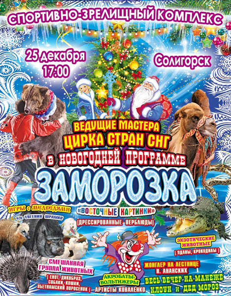 25 декабря в Спортивно-зрелищном комплексе состоится новогоднее цирковое шоу "Заморозка".