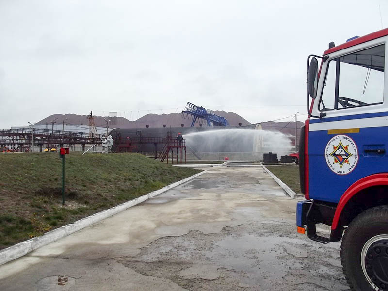 17.11.2015 проведено показное тактико-специальное учение на мазутохранилище промышленной площадки четвертого рудоуправления ОАО "Беларуськалий" на тематику: "Тушение пожаров ЛВЖ и ГЖ в резервуарах и резервуарных парках".