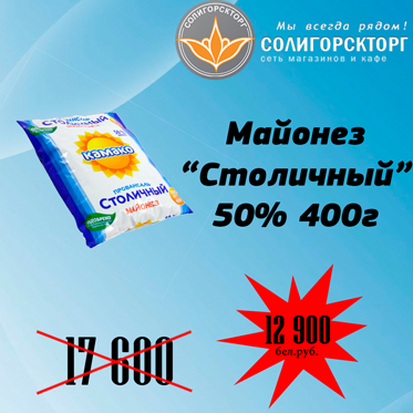 С 26 декабря по 30 декабря магазин продлевает работу до 22.00. В обновленном магазине, как и в остальных торговых объектах ОАО «Солигорскторг», всегда можно воспользоваться выбором разнообразных качественных товаров, представленных по сниженным ценам. Акция «ЖЕЛТЫЙ ЦЕННИК» - ежемесячная акция на различные позиции самого популярного товара по самой выгодной цене. Например, на этой неделе в магазине «Центральный»:
