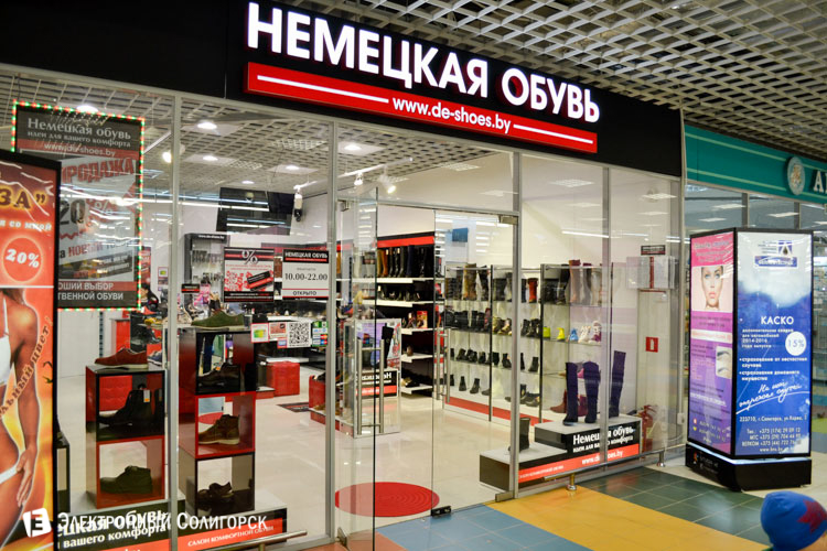 Магазины «Немецкая обувь» работают для вас в Солигорске по адресу: торговый центр «Корона» и гипермаркет «Грин».