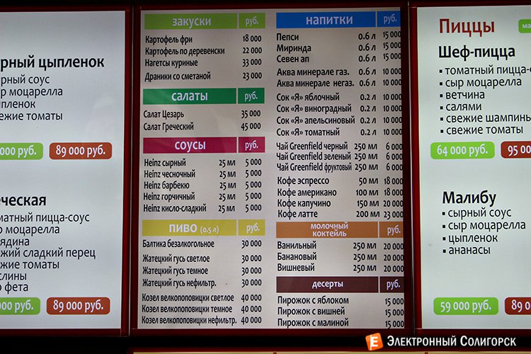 «Корица» доставит вам домой или в офис, да вообще куда угодно в пределах Солигорска пиццу, картофель фри, наггетсы, салаты и безалкогольные напитки.