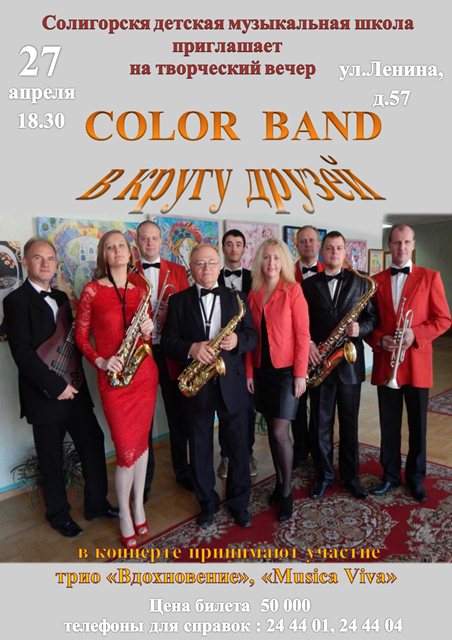 Сегодня, 27 апреля любителей эстрадной и джазовой музыки приглашает на свой концерт один из самых известных творческих коллективов города – народный эстрадный ансамбль «Колор Бенд».