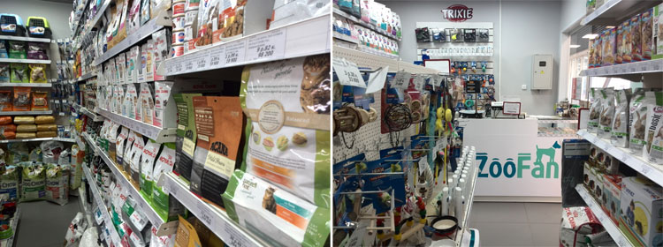 В зоомагазине «ЗооФан» представлен широкий ассортимент сухих кормов, консервов, витаминов и лакомств для животных, который постоянно пополняется новинками. Продаются уютные домики для питомцев, клетки, переноски, поводки, ошейники, миски и многое другое.