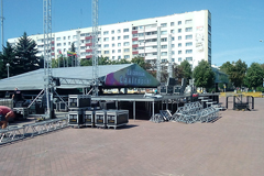 Фотофакт. На площади Солигорска устанавливают праздничную сцену
