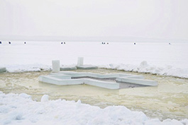 Главным местом крещенских купаний солигорчан станет иордань на водохранилище в районе спасательной станции ОСВОД. Уже сегодня сотрудники станции прорубили в ледяной толще водоема иордань в форме креста для завтрашних окунаний.