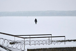 Одинокий путник. На Солигорском водохранилище после отмены запрета выходить на лед