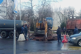 Фотофакт. Провал и работы по его устранению на проезжей части в центре Солигорска