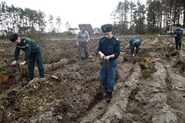 В помощь лесу. Солигорские спасатели приняли участие в озеленительной акции