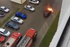 Видеофакт. Сегодня утром в одном из дворов Солигорска горел автомобиль