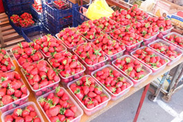 Сегодня на "Октябрьском" рынке уже продают клубнику. Украинская клубника стоит по 9 и по 7 рублей за 1 кг. Там же можно купить молдавскую черешню по 13 рублей за килограмм. Продавщица украинской клубники сказала, что из-за морозов белорусской клубники с грядок может вообще в этом году не быть. Но белорусскую клубнику на рынке можно найти. Продавцы фасуют её по килограмму и по полкило. 1 кг стоит 10 рублей, полкило - 5 рублей.