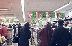 На фасаде ТЦ "Восток" теперь новая вывеска с девизом дискаунтера "Заўсёды смачные прапановы". Время работы "Бруснiчкi" идентично расписанию находившегося здесь "Евроопта" - с 9.00 до 22.00 без обеда и без выходных.
