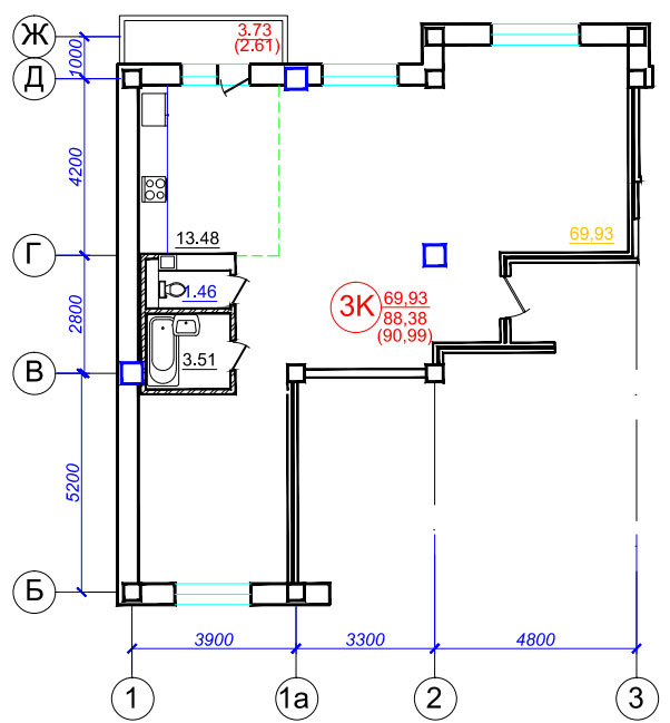 В 10-ти этажном монолитном жилом доме запроектировано и построено 72 квартиры. Застройщик предлагает к приобретению одно-, двух- и трехкомнатные квартиры с площадями от 51 до 91 кв.м. Все квартиры имеют свободную планировку, что позволяет выполнить отделку любого уровня и качества. Застройщиком из отделочных работ выполняются: стяжка полов, штукатурка стен, разводка всех коммуникаций, индивидуальные счетчики тепла, установка окон ПВХ, итальянских радиаторов.