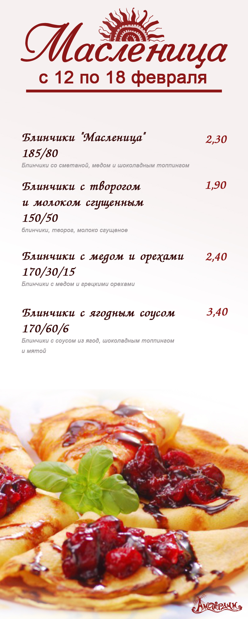 «Амстердам» — это уютное кафе с большим выбором блюд европейской кухни.