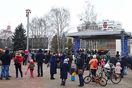 В Солигорске на площади сегодня проходят масленичные гуляния. На сцене выступают творческие коллективы Солигорщины, в торговых палатках можно отведать горячих блинов и других угощений, приобрести сувениры. Одна из главных забав - покорение масленичного столба с призам у самой верхушки - пользуется у смельчаков популярностью, многие подарки уже благополучно сорваны. Завершило праздника традиционное сожжение чучела Зимы (смотрим видео).