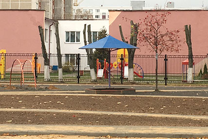 Проектом предусмотрено обустройство двора, прокладка новых тротуаров из мелкоштучной плитки, устройство новых парковок, размещение детских площадок, спортивной площадки, различных малых архитектурных форм, не забыт и вопрос озеленения. Также реконструкция предусматривает и замену коммуникаций на данной территории.