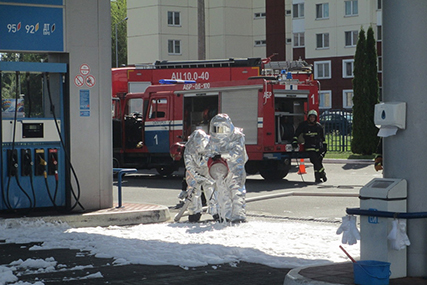 Если загорелась бензоколонка... Солигорский ГРОЧС поделился подробностями проведения учений на АЗС