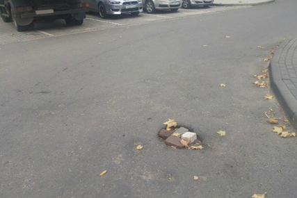 В этом месте асфальт просто провалился. Добраться до парковочного места – тот еще квест.