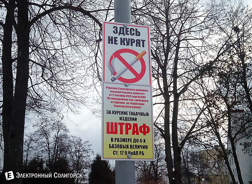 За курение табачных изделий в указанных скверах предусмотрен штраф в размере - до 4-х базовых величин, в соответствии со ст.17.9 КоАП РБ.