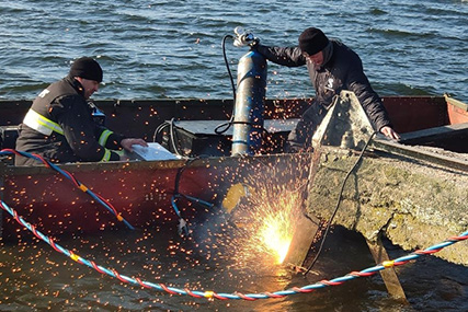Демонтированы металлические опоры и фундаменты реконструируемой воздушной ЛЭП на Солигорском водохранилище