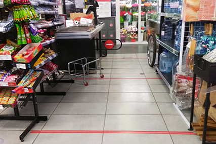 Соблюдай дистанцию! В магазинах сети "Радуга" у касс появилась специальная разметка