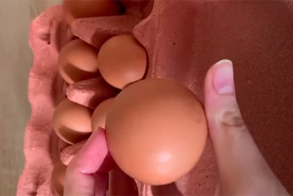 Минчанка купила десяток яиц Солигорской птицефабрики и нашла среди них совершенно круглое