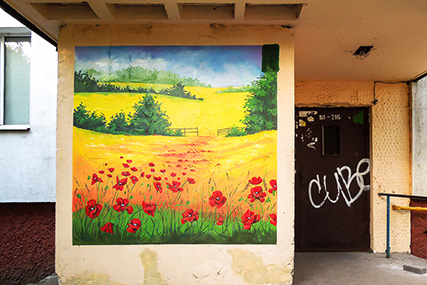 От миньонов до носорога и пейзажей. Чьи работы украшают многие подъезды и дворы? Поговорили с солигорским художником