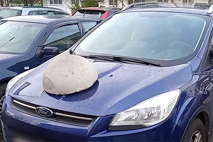 Нетрезвый солигорчанин закинул бетонную полусферу на капот авто (+видео)